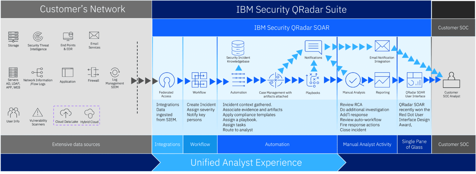 IBM Security® QRadar® Suite is a security information and event management (SIEM) solution that integrates various security products to provide a threat detection and response platform. It leverages AI and automation to enhance the productivity of security analysts and support the entire incident lifecycle.